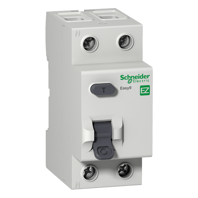 O interruptor diferencial residual (DR) Easy9 EZ9R33263, 2 pólos, 63 amperes no máximo a 230Vca associa as funções de comando, seccionamento dos circuitos elétricos e interrupção automática de um circuito em caso de defeito de isolamento entre fase e terra superior ou igual a 30mA nas instalações elétricas residenciais, edifícios comerciais e industriais, suporte de montagem em trilho DIN que permite uma instalação mais rápida e segura