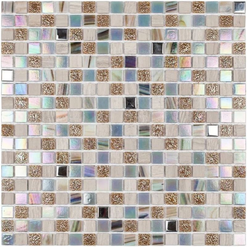 | Pastilha de vidro com resina e metal TY20, tamanho da pasilha 1,5x1,5cm, indicada para áreas úmidas (fora do box do banheiro), áreas secas (cozinha, lavanderia, sala ...). |